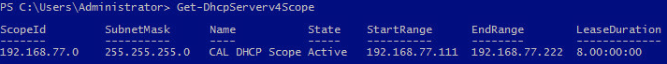 Add-DhcpServerV4Scope -Name "CAL DHCP Scope" -StartRange 192.168.77.111 -EndRange 192.168.77.222 -SubnetMask 255.255.255.0Add DNS Server, Router Gateway, Options in DHCP