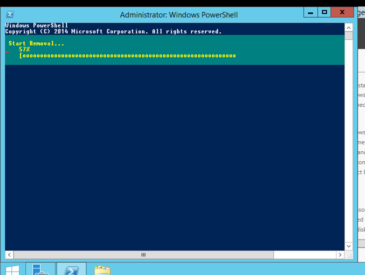 Get-WindowsFeature -Name *gui* | Remove-WindowsFeature -RestartPress enter to execute the command. Your terminal will show the removal progress, like in the image below. Wait for the process to complete.